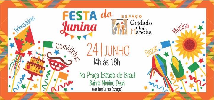 Pra quem quiser participar de uma autêntica festa junina, é só chegar lá na praça Estado de Israel, na frente do Espaço Cuidado Que Mancha. Vai ter pescaria, jogo de argolas, boca do monstro. Vai ter uma oficina criação de brinquedos de sucata. Vai ter comidinhas gostosas. Vai ter a Editora Libretos com banca de livros. Vai ter um brechó, quentão, cerveja artesanal e muito mais! Uma tarde pra reunir a família, os vizinhos, brincar e pegar um solzinho!