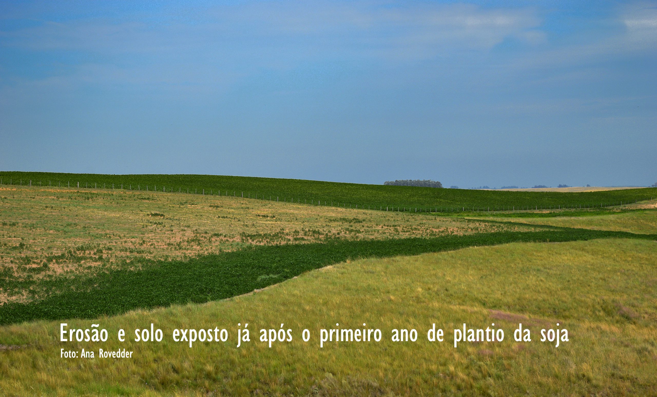 O plantio de soja provoca um esgotamento muito rápido do solo do Pampa. “Você até consegue trabalhar sistemas produtivos intensivos fazendo manejo conservacionista do solo, o problema é quando você não faz o manejo conservacionista. E a maioria não faz. Fora que a soja é uma cultura anual, então todo ano se mobiliza demais essas áreas produtivas. A silvicultura é problemática, mas ela é uma cultura de ciclos de sete anos, então fica mais parado. Mas a soja é todo ano”, diz Rovedder.