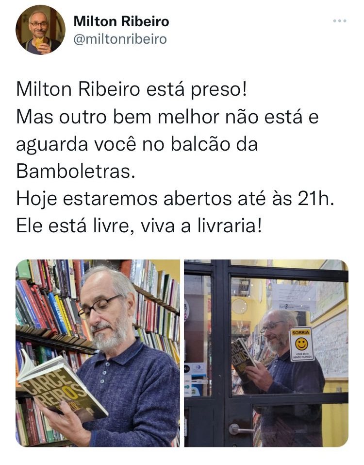 Porém, é bom explicar aos desavisados: o Milton Ribeiro livreiro e escritor em nada se assemelha ao seu xará, envolvido em suspeita de liberação irregular de verbas, em um esquema que envolveria dois pastores e até propina em ouro.